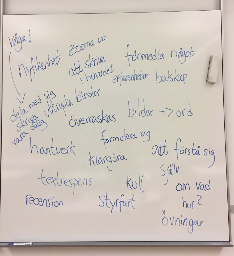 författarskola 2018. Med hjälp av ett stipendium från Karin Ruuth-Bäckers minnesfond arrangerade jag en serie seminarier med syftet att utforska och synliggöra litteratur och författarskap från olika delar av Afrika där deltagarna samtidigt fick möjlighet att undersöka sin egen position som skrivande.